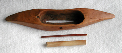 Note also that considerable effort was expended to polish to underside of most shuttles to allow them to glide across the warp threads.