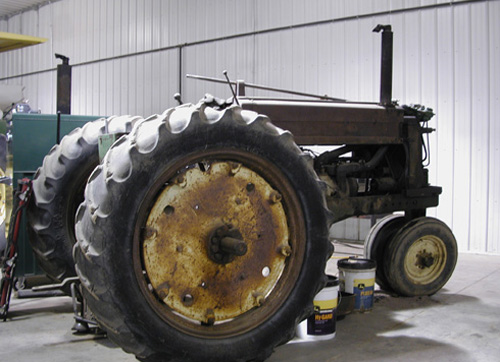 There are several casting numbers for wheels so we made a special trip over to Carmichael's to ensure we were getting the right part. From the picture above it can be sen that the old John Deere was in the final stages of reassembly. It had spent the winter since mid-November 2006 safely tucked in the workshop.