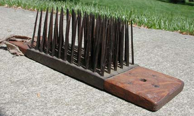Hetchel, hetchel, and hackle are all names for the bed of nails that were used to comb the flax fibers after scutching. They were bolted to a work surface in a series from coarse to fine. The bundle of fibers are flipped over the teeth and pulled though, much the same as combing hair. A flax dresser who could gain the largest amount of spinable fiber from a crop of flax was very highly paid.