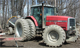 Below is the tractor and wagon version used by the Siler family in Wyoming county, NY to transport their sap from the collection tank to their sugar shack. A ride in a heated cab down paved country roads is a far distance from Currier and Ives prints of collecting sap.