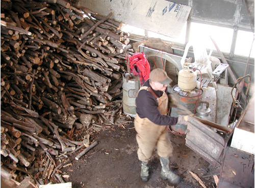 Seasoned firewood is gathered and stored where it will be nice and dry to fire the evaporator. Since Siler's were boiling sap since Christmas Day, they had used quite a bit of their summer and fall accumulated wood.