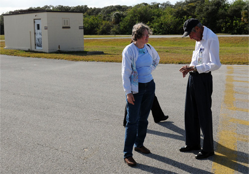 As a guidance system instructor on the Snark Intercontinental Guided Missile, Jim traveled to Cape Canaveral sometime about 1958 to look over the shoulder of Northrop during their launch of a Snark missile. Even though he worked on various other missiles for another 30-some years, he had not been back to the Space Coast. A scale model of a Snark missile is on display at the space center. Jim learned on our trip that there was a skid pad built in an attempt to land Snark after a test flight using remote control, but these efforts were unsuccessful. The circular error of probability of Snark ever hitting a target was so large that the Snark missile program was scrapped after being operational in Presque Isle, Maine, for a short time-period.
